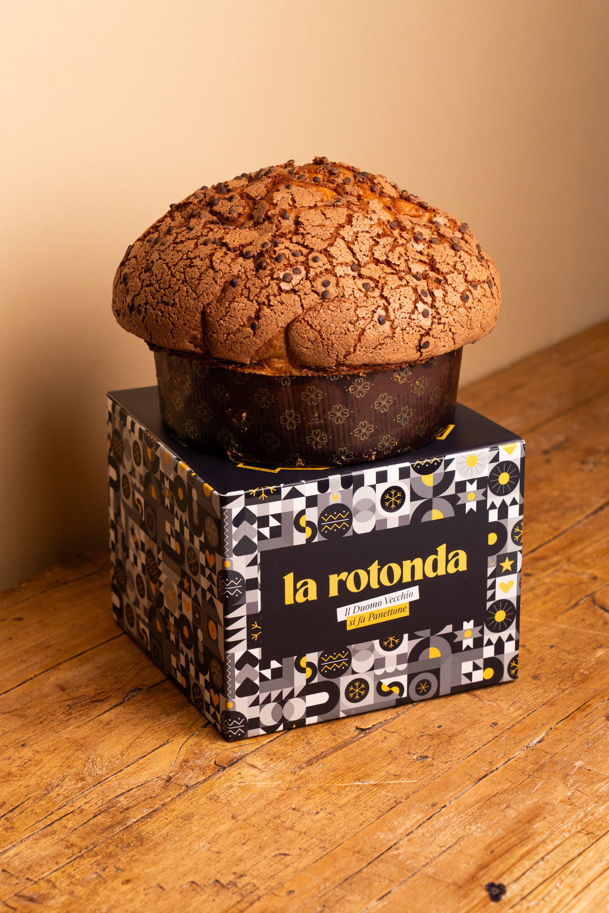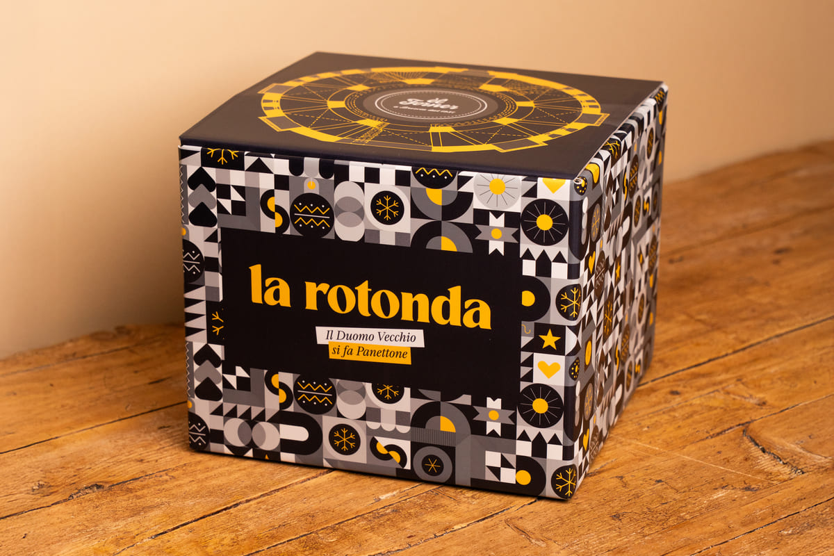 Pensata per essere gustata tutto l’anno, La Rotonda si ispira nella forma a un panettone: un impasto morbido e profumato alla vaniglia, senza canditi, completato da una glassa al cioccolato che richiama la cupola della cattedrale romanica. Un omaggio alla solidità e all’eleganza senza tempo del Duomo Vecchio, reinterpretate in chiave contemporanea.