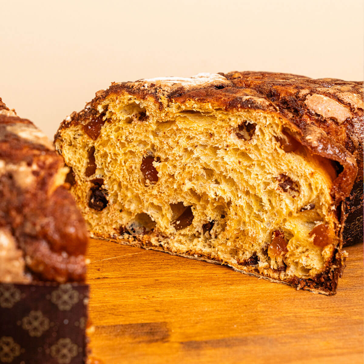 FARINA DI GRANO TENERO TIPO 0, BURRO, ACQUA, ALBICOCCA CANDITA, ZUCCHERO, TUORLO D’UOVO, LIEVITO MADRE, MIELE DI FIORI D’ACACIA, SALE E BACCELLI DI VANIGLIA.